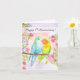 This hand-painted watercolor and pen illustration features lovebirds perched on a branch, surrounded by soft pink and purple flowers against a romantic pink sunset. Designed as a 1st wedding anniversary card, this artwork captures love, togetherness, and lasting commitment.