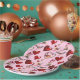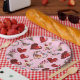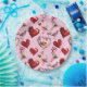 Die Lovebirds wurden in einem quillenden Stil mit Herzen auf einem rosa Polka gepunkteten Hintergrund gemacht. Spaß am Valentinstag.