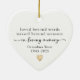 💛 A tender keepsake to honor a loved one’s memory. This elegant heart-shaped ceramic ornament features the heartfelt words “Loved beyond words, missed beyond measure” with “In loving memory” beautifully scripted beneath. Add a name and years to create a personalized remembrance that brings comfort each time it’s seen.