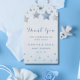 Fügen Sie Ihrem Dankeschön ein wenig himmlischen Charme mit diesen süßen Geschenketiketten hinzu! Sie zeichnen sich durch ein zartes Design von Aquarellblau-Sternen aus, die von oben hängen, wie winzige Wünsche, die nach unten schwebten. Ein anmutiges "Dankeschön"-Skript nimmt die zentrale Bühne, bereit für Sie, sich an Favoriten oder Geschenke anzuhängen. Diese Tags haben wir uns als die perfekte Touch vorgestellt, als eine kleine aber sinnvolle Art, Ihre Dankbarkeit für die Feier Ihres besonderen Tages zum Ausdruck zu bringen. Es ist wie ein kleines Sternenhimmel, um jedem Ihrer wunderbaren Gäste zu danken.