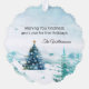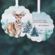 Lovely Dei with Red Scarf in Snowy Forest w Name Ornament Karte