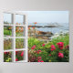 LEINWAND-like FENSTER GARTEN OCEANSCAPE OGUNQUIT.Genießen Sie diesen Ausblick jeden Tag! Diese schöne Szene ist von einem offenen Fenster gerahmt und vermittelt den Eindruck, durch ein echtes Fenster zu schauen, sodass man morgens geweckt werden kann und aus dem Fenster schauen kann und sich vorstellen kann, dass man den schönen Garten und den Ozean sieht.