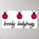 Drei süße Ladybug-Illustrationen zieren dieses Design. Text im Skript liest, Liebliche Ladybugs.