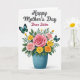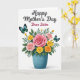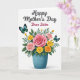 This card features a fresh bouquet of roses arranged on a bright white background, creating a calm, airy setting. A large soft pink rose sits near the center, surrounded by smaller yellow and orange buds, with green leaves and tiny unopened blooms tucked between them. The flowers rest in a teal planter with gentle horizontal ridges, adding a relaxed, homey touch that suggests a caring gift set out for someone special ❤️. Above the bouquet, two butterflies hover close together, their blue-green wings angled as if they’re sharing a quiet moment in midair. Near the top, the main line of text reads “Happy Mother’s Day” in dark charcoal lettering, with “Dear Sister” placed nearby in a rich red tone for contrast 🌼. The words are positioned above the flowers with plenty of open space, keeping the layout easy to read without crowding the illustration. Soft, even lighting brings out the petal layers and the planter’s ridged texture, while the butterflies’ wings show a subtle gradient from teal to deep blue-green.