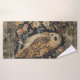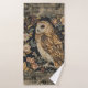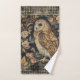 Lovely Owl in the Flowers Garden ,Gold Checkered , Badhandtuch Set