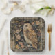 Lovely Owl in the Flowers Garden ,Gold Checkered Pappteller