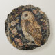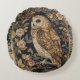 Lovely Owl in the Flowers Garden ,Gold Checkered , Rundes Kissen