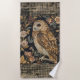 Lovely Owl in the Flowers Garden ,Gold Checkered , Strandtuch