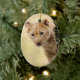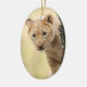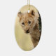Entzückendes Löwe bub, das von hinten einen Baum auf der alternativen ovalen Weihnachtsverzierung verfügbar lugt, um besonders anzufertigen.