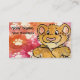 Dieses Lächeln, entzückendes Löwejunges macht einen netten Eindruck für Ihr Geschäft! Dieser Cartoon, WatercolorAusrüstungsbeschreibungen ein rotes und orange catprint Muster. Fertigen Sie die Front und die Rückseite mit Ihren Unternehmensinformationen besonders an.