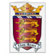Heraldisches Schild, welches das Symbol von Richard der Lionheart, 3 Löwen auf einem Burgunder-Hintergrund mit einer Krone kennzeichnet.