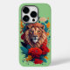 Sommerlicher Löwe, florales iPhone 14 Pro Fall, perfekt für Ihr Handy, ändern Sie die Farbe des Hintergrunds, wenn Sie gewollt, um