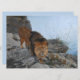 Dieses Design zeigt ein Gemälde des deutschen Künstlers Richard Friese (1854-1918). Es zeigt einen majestätischen männlichen Löwen, der durch eine Berglandschaft schlängelt. Der Löwe geht ruhig und selbstbewusst über zerklüftete Felsen in der Nähe des Gipfels eines hohen Berges. Ein Strand an der Küste und das Meer ist in der Ferne zu sehen. Der Löwe hat goldfarbenes orangefarbenes Fell mit schwarzen Pflastersteinen rund um den Mund, Augen und Pfoten. Die Kreatur ist muskulös und sehr mächtig. Es ist ein beeindruckendes Tier und imposanter Raubtier.