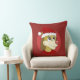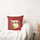 Kissen mit Abbildung des Kopfes des niedlich lächelnden Löwenkleides in einem roten Sportkleid mit Fußballball, in rotem Kreis, illustriert von Radka Kavalcova