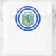 Runder Aufkleber mit einem Bild eines blauen und gelben Löwen von Juda Emblems mit Ariel oben in hebräisch, und breite doppelblaue, hellblaue, auf weiß getrimmte Grenzen. Siehe dazu passendes Konfetti, Etikett und Packpapier. Die gesamte Hanukkah Sticker Kollektion finden Sie unter CARDS & STICKERS Kategorie im HOLIDAYS Bereich.