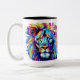 Beginnen Sie Ihren Tag mit einem Schwanz! Diese auffallende zweifarbige Tasse zeichnet sich durch ein gewagtes und farbenfrohes Löwendesign aus, das perfekt für jeden ist, der Lieben hat, eine Aussage zu treffen. Die majestätische Mähne des Löwen platzt in kräftigen Blautönen, lila, orange und grün und erzeugt so einen atemberaubenden Regenbogeneffekt. Das elegante Interieur in schwarz fügt sich harmonisch in das helle, künstlerische Äußere ein. Egal ob Sie morgens einen Kaffee trinken oder einen Nachmittagstee genießen, diese 15 oz Tasse verbindet erbitterten Stil mit Funktionalität. Ein Muss für Tierfreunde und Kunstliebhaber! Spülmaschinen und Mikrowellen geeignet.