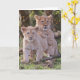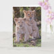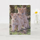 Fotografie eines Paares Barbary-Löwejungen dargestellt auf 5" x 7" Grußkarte, links freier Raum für Ihre eigene Mitteilung. Weißer Umschlag eingeschlossen.