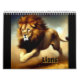 Kalender mit zwölf dramatischen Bildern von Löwen.