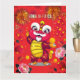 Postkarte mit einem süßen Barongsai. Mit seinen farbenfrohen Laternen und Feuerwerken bietet sie eine spannende Herausforderung für die ganze Familie während der Feier zum Mondneujahr