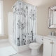 " Einige sehen ein Unkraut, sehen einige ein Wunsch-" Silhouette der Löwenzahnhauche und -samen gegen einen rehabilitierten hölzernen Zaun. Ein schöner dekorativer Duschvorhang für irgendein Badezimmer.