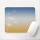Löwenzahnsamen schwimmen über einen weichen Sonnenunterganghintergrund.