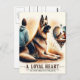 Ein deutscher Schäferhund sitzt mit seinem menschlichen Begleiter und blickt auf den Sonnenuntergang. Die Szene ist friedlich und ruhig, was die Verbindung zwischen Menschen und ihren Haustieren unterstreicht.