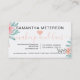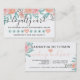 Blauer Wasserfarbenkarte und eine moderne Typografie, mit handgemalten Rose aus Korallenpfirsichen, pastellfarbenen, türkisfarbenen Blume mit grünem und braunem Blatt und Zweigen in einem botanischen Bouquet-Arrangement. Eine elegante Skriptkalligraphie, 10 Stempel.