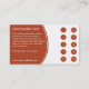 Loyalitäts-Visitenkarte-Lochkarte mit übersichtlichem Design und modernem Farbschema. Zurück von der Karte hat 10 Durchschlagsplatzhalter auf dem Bereich, zum in Ihre Firmenpreisinformationen hereinzukommen. Vervollkommnen Sie für eine Pizzafirma, ein Bagelgeschäft, ein chinesisches Restaurant, eine Kaffeestube, einen Nahrungsmittel-LKW oder einen Würstchenstand.