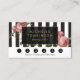 Ihr Name oder Firmenname wird elegant auf einem schwarz-weiß gestreiften Hintergrund dargestellt, mit einer Vintagen Blumenüberlagerung für eine sehr schicke und stilvolle Ästhetik auf dieser anpassbaren Salon-Loyalitätskarte. Aktualisieren Sie die Werbeaktion so, dass sie Ihrem Wunschangebot entspricht. © 1201AM CREATIVE