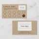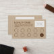 Bringen Sie Ihrem Unternehmen eine Touch erdigen Einfachheit mit diesem natürlichen Design. Diese Treuekarten sind vollständig anpassbar und verfügen über 10 Leerräume, mit denen Sie die Besuche Ihrer Kunden mit einer Briefmarke oder einem Lochpunch erfassen können. Fügen Sie einfach Ihr Logo und Ihre Firmendetails hinzu.