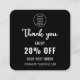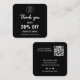 Eine minimalistisch schwarz-weiße QR-Code-Discount-Karte für ein berufliches Unternehmen, um als Werbemittel zur Kundenbindung zu nutzen. Ersetzen Sie das Bild durch ein quadratisches Foto Ihres Firmenlogos. Sie können den Schriftart, die Farbe des Schriftartes, die Größe des Schriftartes, den Abstand der Buchstaben, die Hintergrundfarbe und die Farbe der Dankeschön-Grafik mit dem Design-Tool ändern. Sie können auch die Social Media Icons so ändern, dass sie für Ihr Unternehmen relevant sind. Das schlichte, moderne und elegante Design ist Ihr persönlicher Wunsch.