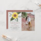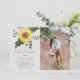 Rustikale, gigantische Sonnenblumen und Grünpflanzen in Kombination mit beigem Hintergrund und trendiger Terrakotta-Rückseite. Elegante, moderne, einzigartige Hochzeitseinladung mit individuellem Foto des Paares.