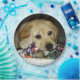 LR gelbe Labrador Welpe mit Spielzeug Pappteller