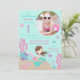 Kleine Jungfrau-Einladungskarte zum ersten Geburtstag mit Unterwasserkreaturen und einer Einfügemaschine für das Foto.