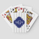 Lt Gray White Strip Navy Quatrefolie 3 Monogramm Spielkarten