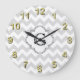 Lt Grey White Zickzack White Quatrefolie Monogramm Große Wanduhr