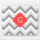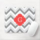 Lt Two Grey WhZickzack SQ Coral Red Name Monogram Mousepad