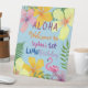 Tropisch, Aquarellblüte, Sommer, Luau willkommen zum 1. Geburtstagsschild mit bunten Aquarellfarben, Palmen und rosa Flamingo.