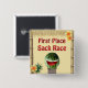 Eine grafische Darstellung einer Ki-Hütte mit einer lustigen Wassermelone und dem Text First Place Sack Race auf einem Award-Button. ©2013charmainepaulson