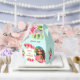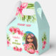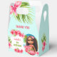 Niedliche exotische große Greifkästen mit dem niedlichen kleinen Tiki-Mädchen mit einem Hibiskus Blume-Bouquet in wunderschönen hellen Sommerfarben für die tropische Sommer Hawaiian Thema Mädchen Birthday Party. Sie können aus 3 Größen dieser Gable-Gefälligkeitsboxen wählen. Personalisieren Sie den Text einfach. Kate Eden Art