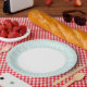9" runde Teller für jeden Anlass. Hellgrüner Streifen. Koordiniert mit Luau Party Collection.