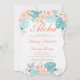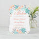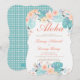 Aloha! Entdecken Sie das Paradies für diese tropische Verlobung-Dusche mit Orange, Korallen, Türkis und aquamarinen blauen tropischen Blume und Blättern. Rückseite mit türkisfarbenem Rattan.