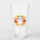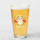 Farbige Illustration mit "Lucky Cat" Textdesign auf Japanisch und einer Kawaii Katze, die auf gestreiftem Retro-Hintergrund eine einzeilige Dekoration anbietet