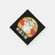 Farbige Illustration mit "Lucky Cat" Textdesign auf Japanisch und einer Kawaii Katze, die auf gestreiftem Retro-Hintergrund eine einzeilige Dekoration anbietet