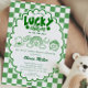 A little lucky charm is on the way. Celebrate with this playful Lucky Charm baby shower invitation featuring shamrocks, a rainbow, pot of gold, and a bold green checkerboard backdrop. The modern typography and clean layout make your party details pop while keeping the design fun, festive, and easy to read.