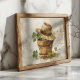 Dieses Kunstwerk ist ein charmantes und rustikales Stillleben mit einem verwitterten Terrakottapult mit lebhaften, grünen Vierblättrigen, die aussprießen und viel Glück und Vermögen symbolisieren. Ein abgetragener Strohhut, der möglicherweise einem Bauer oder Gärtner gehört, wird gelegentlich auf dem Topf platziert und verleiht der Szene eine Touch von Charakter und Erzählung. Der Hintergrund ist strukturiert und erdig, mit warmen, neutralen Tönen, die das natürliche und Bio Gefühl der Komposition verstärken. Dieses Gemälde strahlt ein Gefühl von Einfachheit, Wärme und eine Verbindung zur Erde aus und macht es zu einem perfekten Stück für diejenigen, die die Schönheit von einfachen, alltäglichen Objekten schätzen.