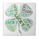 Irischer Spaß findet man in diesem großartigen Wort Kunst Grafik. vierblättriges Kleeblatt Silhouette mit "Lucky" in verschiedenen Schriftart und Größen