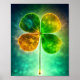 Ein fröhliches St. Patrick’s Day Design mit einem glücklichen vierblättrigen Kleeblatt, umgeben von frostigen Tasse Bier. Der Klee ist lebendig grün mit aufwändigen Details, die Glück und Feierlichkeit ausstrahlen. Die Tasse sind goldgelb mit weißem Schaumstoff, der eine feierliche Touch verleiht. Goldmünzen und ein subtiler Regenbogen prägen den Hintergrund für einen zauberhaften St. Patrick's Day-Look.
