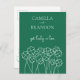 An der Vorderseite dieser modernen, Save the Date Postkarte stehen die Namen der Ehepaare, ein einprägsamer Text:"Glücklich in der Liebe got" in einer Mischung aus eleganter Typografie und moderner handgeschriebener Kalligraphie sowie ein herrlicher Haufen wilder vierblättriger Kleber. Alles in Weiß auf einem schönen smaragdgrünen Hintergrund. Auf der Rückseite finden Sie die informelle Einladung und weitere Infos zum Event. Diese Postkarte lässt sich einfach über den Button "Personalisieren" anpassen. Sprechen Sie mich mit Fragen und Bestellungen an, ich helfe Ihnen gerne! Bitte beachten Sie, dass ich eine bestehende Bestellung nicht ändern oder stören kann. Durchsuchen Sie meine Wedding Collection für weitere Einladungen und andere passende Produkte wie Gummi-Briefmarke, RSVP-Karten und mehr!
