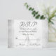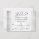 Dieses Hochzeitstil-RSVP-Design zeichnet sich durch einen weißen Kleber aus, der auf einem grungenhaften grauen Hintergrund steht. Der Text ist grau, die Namen sind dunkelgrün und & auf der Rückseite ist orange. Es ist ideal für jede Hochzeitsankündigung und perfekt für irische und St. Patrick's Day Hochzeiten.